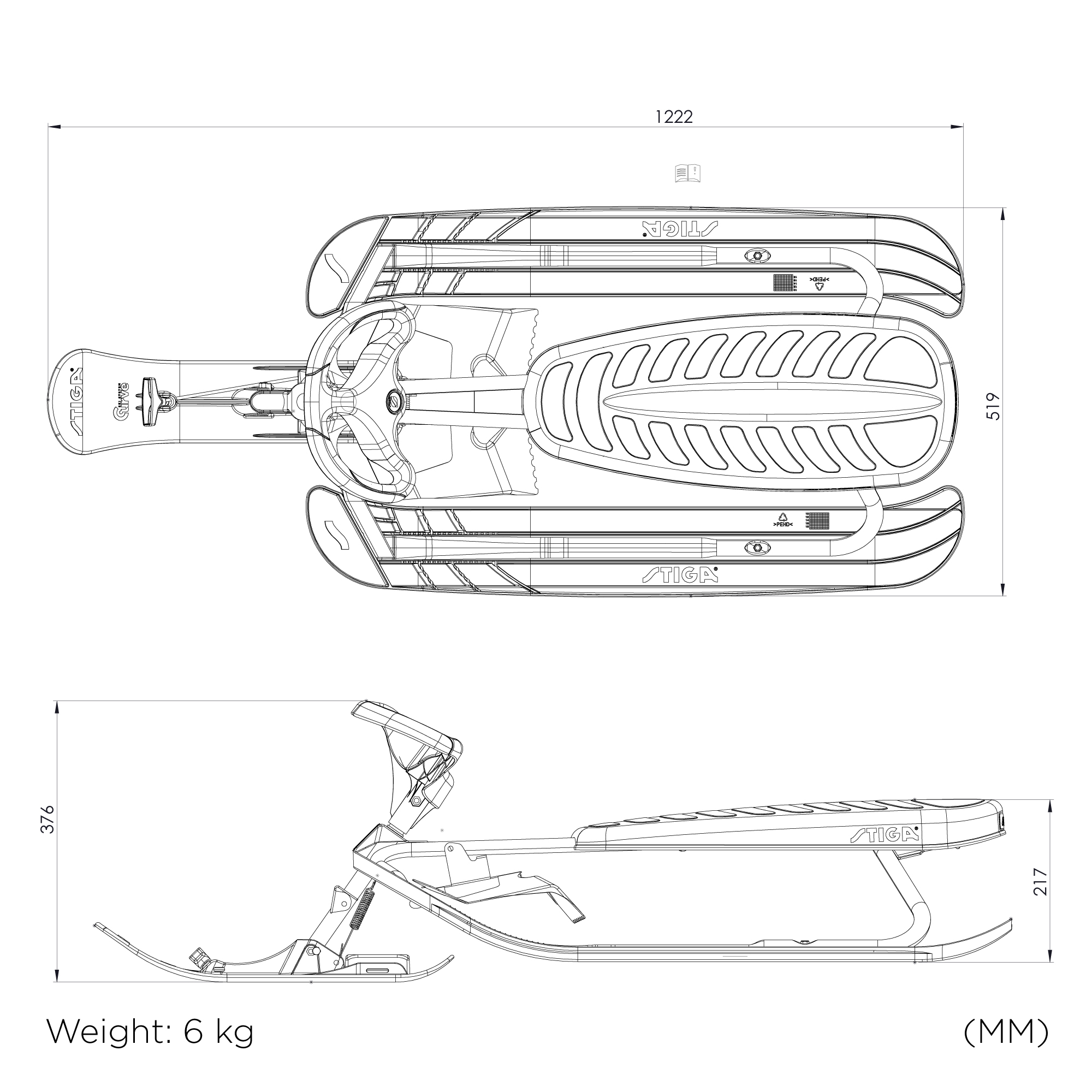 - Kelk on varustatud Curve Ski System’iga – nn kõverdatud, pööramist hõlbustava esisuusaga