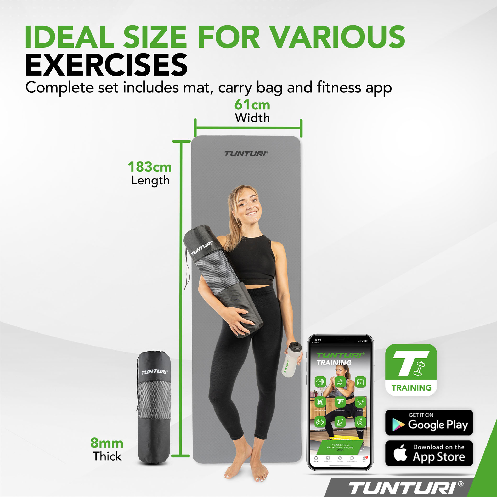 ✓ Eriti paks 8 mm matt tagab maksimaalse mugavuse treeningu ajal