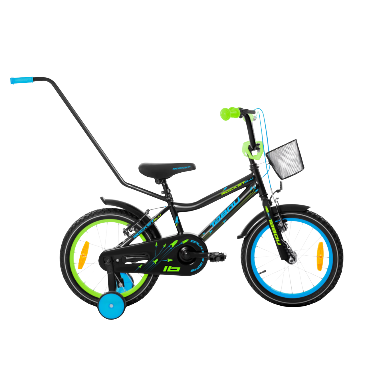 Tabou jalgratas on kerge ja mugav, suurepärane esimeseks jalgrattaks. Rocket mudelil on lenksu küljes väike esikorv lapse jaoks oma mänguasjade ja muude aarete hoidmiseks. Varustusse kuuluvad veel porilauad ja ketikaitse ning pehmed käepidemed. Hoo saab maha võtta nii V-piduritega. Rocket sobib väga hästi sõitma õppimiseks – rattal on eemaldatavad abirattad ja käepide, mille abil saab lapsevanem ratast vajadusel liigutada/püsti hoida.
