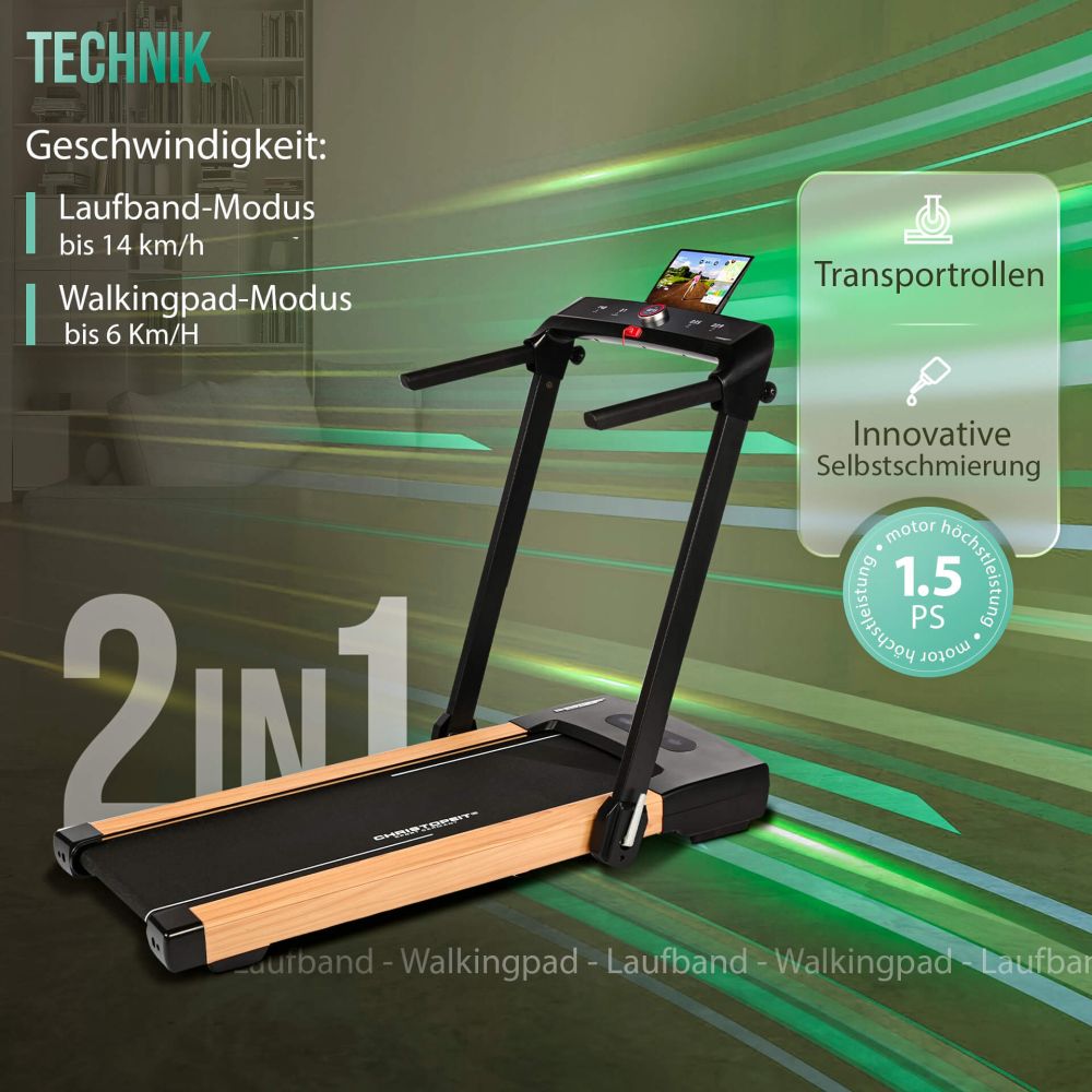 Kogege mitmekülgsust ja efektiivsust selle Christopeit 2in1 jooksulindiga, mis pakub Teile käimislinti ning jooksulinti ühes seadmes. Selle innovatiivse seadmega saate kohandada iga treeningu oma vajadustele sobivaks ning treenida kodus või kontoris hoolimata ilmast. Jättes käepidemed üles tõstmata, saate kasutada seadet käimislindina ning seadme maksimaalseks kiiruseks on 6 km/h. Tõstes käepidemed üles on seadme maksimaalseks kiiruseks 14 km/h, mis on ideaalne jooksutreeninguks. Christopeit 2in1 jooksulindil on sisseehitatud kõlarid – nii saate kuulata oma lemmikmuusikat treeningute ajal.